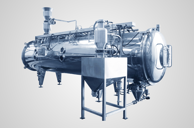 氣流霧化器主要用于實驗室及中間工廠,其動力消耗大。前兩種霧化器都不能霧化的料液,采用氣流式霧化器可能霧化。高粘度的糊狀物、膏狀物及濾餅物料,可采用三流體噴嘴來霧化。氣流干燥機氣流干燥技術成熟,若有操作數據,可以直接設計。目前,有不少干燥設備制造廠能提供這種類型設備。流化床干燥機流化床干燥機僅次于噴霧干燥機。分為加料部位設置攪拌器的流化床干燥機和具有內換熱的流化床干燥機。當用流化床干燥易于團結或結塊的粉粒體物料時,在水分比較大的加料段會產生流化困難現象,這時在加料段設置攪拌器,消除結團問題,能達到正常流化。后者是傳導傳熱和對流傳熱的組合,當用于正常流化態的熱空氣量遠遠不能滿足干燥所需的熱量時,采用設置內換熱器,供給部分或大部分熱量,這種操作方式可以顯著的節能。內換熱器有多種形式。流化床還經常用于組合干燥的第二級和第三級干燥機。在普通流化床上施加振動,稱振動流化床。振動流化從產生振源上可分為2類:一類為振動電機驅動;另一類為普通電機通過激振箱使彈簧產生振動。振動流化床尺寸大時,后者效果較好。流化床噴霧造粒干燥機該過程是流態化技術、霧化技術和干燥技術三者有機結合。它是將霧化的料液噴灑到已流化的晶種床上,使晶種不斷長大和干燥,待長大到規定尺寸時排出器外。該設備體積小、生產能力大,能制造大顆粒。該設備的工業應用已日益增加。